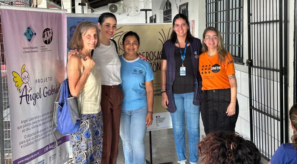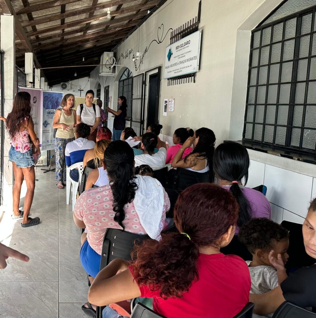 No dia 24, de volta a Boa Vista, a convite da irmã Nelly Aparício de Manzanilla, visitamos o Instituto Migrações e Direitos Humanos (IMDH Solidário). Conhecemos o Projeto Anjel Gabriel, que tem o objetivo de distribuir kits de nutrição para bebês de famílias migrantes e refugiadas, na fase pós-amamentação e tivemos um diálogo com um grupo de mães explicando o que é tráfico de pessoas, como preveni-lo, como percebê-lo, como se proteger e como reduzir danos ao estar colocada em uma situação de risco.