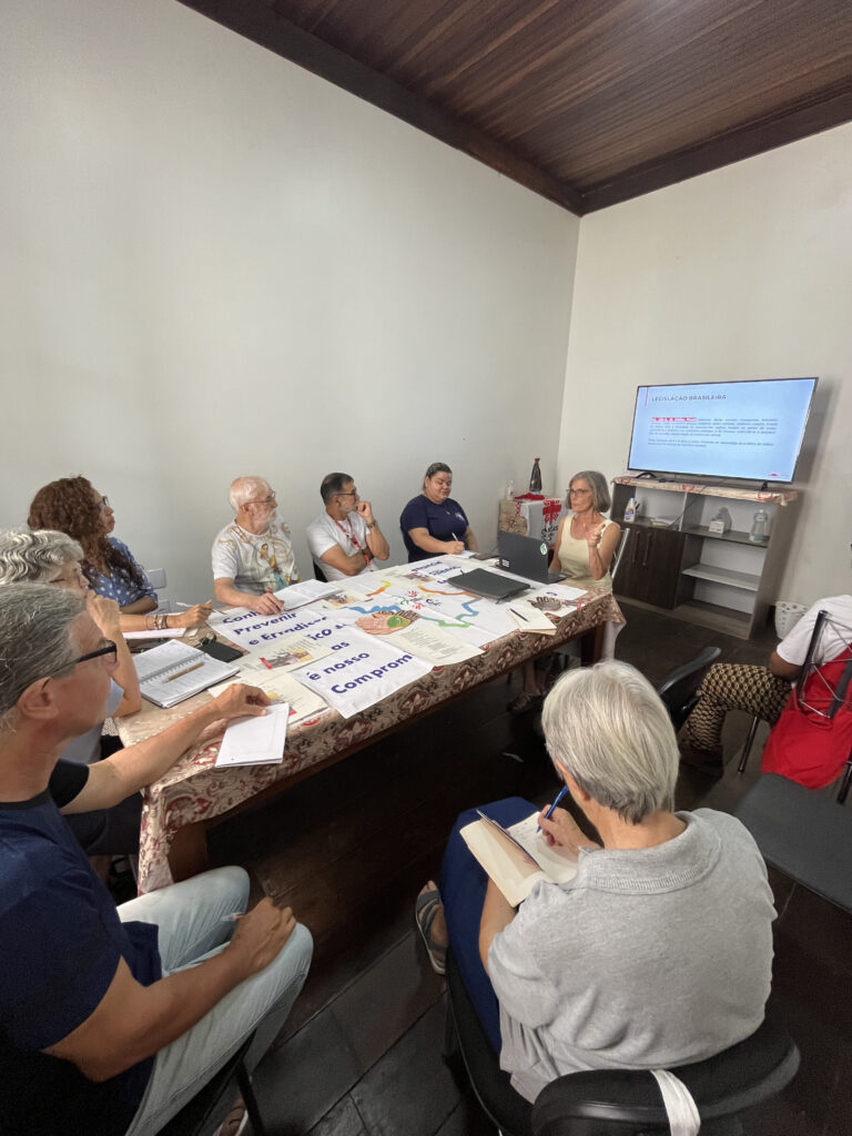 A tarde, tivemos uma reunião com a Articulação dos Serviços aos Migrantes e Refugiados da Diocese de Roraima (ASEMIR), na Casa da Caridade da Diocese de Roraima. O grupo tem integrantes do Serviço Jesuíta para Refugiados e Migrantes, Pastoral do Migrante, Cáritas Brasileira, Cáritas Diocesana, Irmãs Franciscanas, Pastoral da Criança, Instituto Mirasol de Direitos Humanos e Pastorais Sociais.