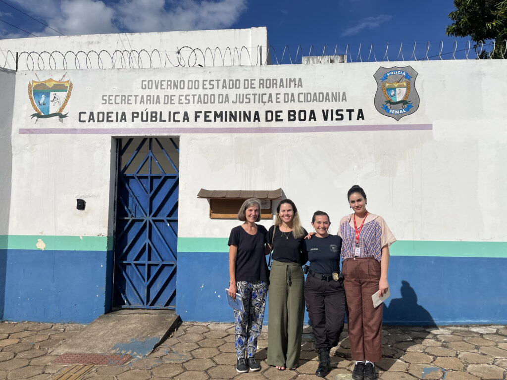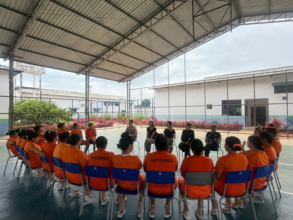 Depois, seguimos Defensoria Pública da União (DPU) de Roraima para um encontro com Lilian de Souza Costa, Defensora Pública Chefe na DPU de Roraima e fomos para a Cadeia Pública Feminina de Boa Vista (CPFBV), a única unidade feminina em todo o estado de Roraima. Fizemos uma roda de conversa com 20 mulheres privadas de liberdade. Naira Barros Galvão, diretora da Cadeia Pública Feminina, e outra agente acompanharam. Falamos do trabalho do ITTC e sobre o que é tráfico de pessoas.